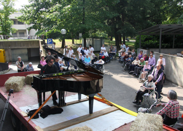 Il pianoforte mobile raggiunge e porta la musica là dove nessun pianoforte è mai stato prima: gira a zonzo per la città, tra i cortili e invita a partecipare alla grande Kermesse Musicale che avrà luogo nel pomeriggio presso i Giardini di Piazza Costa, dove verrà preparato e poi suonato e cantato l’inno del volontariato. Un brano open source dove tutti possono suonare o cantare. Cantanti e musicisti sono i benvenuti, coordinati da Donatella Azzarelli direttrice della Filarmonica Paganelli’79 e dalla Civica Scuola di Musica di Cinisello, con ospiti d’eccezione come Giovanni Falzone e Adalberto Ferrari.”Non mi interessa il vaso, mi interessa farlo” ecco il senso della giornata, costruire insieme un brano di musica, un invito a ciascuno a partecipare e fare la differenza.Il brano open source è stato commissionato a Musicamorfosi da CSV di Monza Brianza