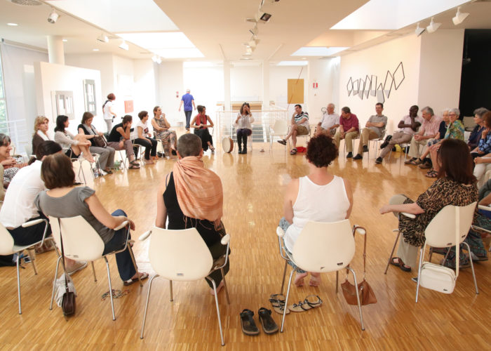 Sono una forma semplice, quasi ancestrale di canto collettivo basata sulla percezione del corpo in relazione a ritmo, suono, spazio e voce. In pratica un direttore propone brevi frammenti melodici che vengono ripetuti in loop dai partecipanti divisi in sezioni, a formare incastri polifonici ispirati ai più diversi linguaggi musicali, dalla musica etnica africana, araba, indiana, alla moderna: jazz, blues, soul e funk. Le Circle Songs attingono sia a forme verbali che non verbali di comunicazione riuscendo così a essere assolutamente universali. Conduce il Seminario Giorgio Pinardi, cantante e sperimentatore vocale, specialista di tecniche utilizzate dai cantori della Mongolia, dei suoni particolari dei pigmei africani, conoscitore della musica indiana e delle raffinate evoluzioni melodiche della musica araba.