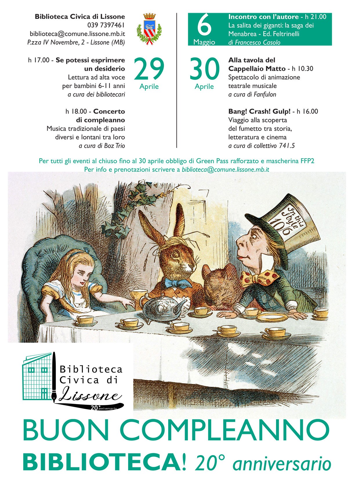 sabato 29 aprile 2022 dalle 18 circa per il Compleanno della Biblioteca Civica di Lissone
