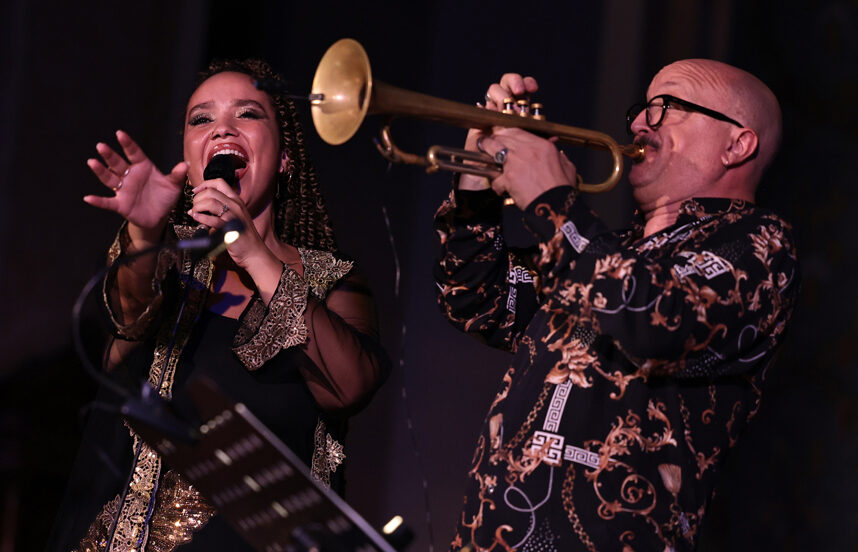 Magnificat è un cantico contenuto nel primo capitolo del Vangelo secondo Luca con il quale Maria loda e ringrazia Dio perché si è benignamente degnato di liberare il suo popolo. Per questo è conosciuto anche come cantico di Maria. Il “nostro” Magnificat è un concerto-preghiera per la salvezza dei popoli del mondo, per la pace e per la fratellanza delle genti. Il tutto suonato, cantato e parlato in tre lingue: italiano, inglese e arabo o, meglio, il dialetto arabo (Darija), lingua madre della strepitosa cantante Badrya Razem, italiana (di Bari) di origine algerina. Il trio si completa con il co-protagonismo di due eccezionali musicisti, da anni apprezzati artisti amici di Musicamorfosi e “angeli custodi” delle nuove generazioni di jazzisti: Giovanni Falzone alla tromba e Roberto Olzer all’organo.